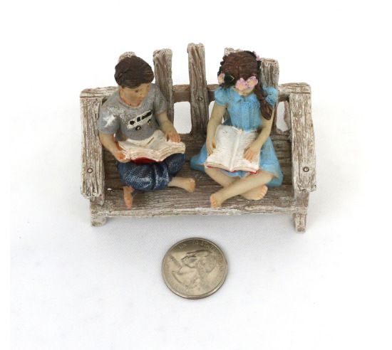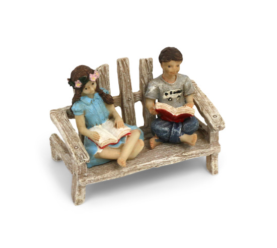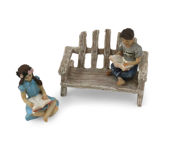 This has quickly become one of our favorite sets! Your clients may use them together or independently. Includes a boy and girl reading and an outdoor chair. Each piece is able to stand/sit on its own. Children are 1.75" tall, chair measures 3.25" wide. Made of resin