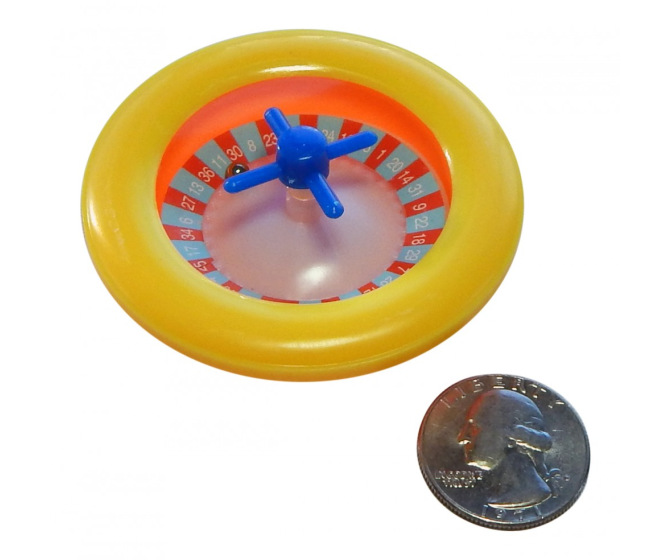 A plastic roulette wheel for sand tray therapy. Measures 3"