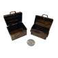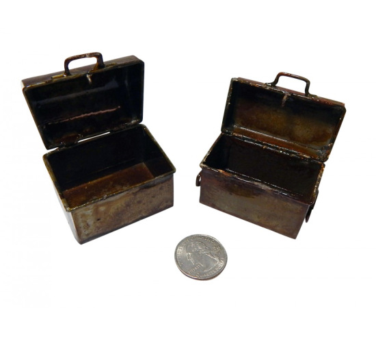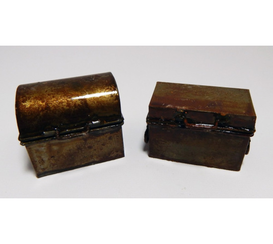 Two metal trunks that open and close. Fabulous detailing. Trunks measure 1.75"h x 2"w and 1.5"h x 2"w