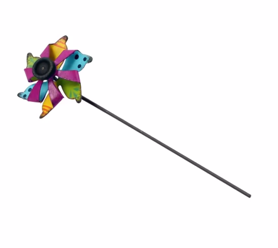 A colorful, sturdy metal pinwheel for sandplay. In assorted colors, includes one. Measures 4.5" tall.