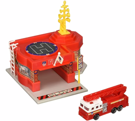 This small die-cast fire station with plastic parts is ideal for the sand tray. Includes one ladder truck. Also great as a toy for the traveling therapist. 5.1" tall.