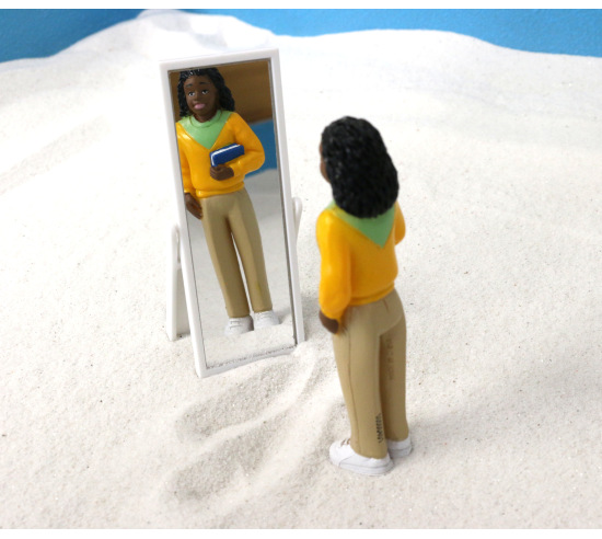 This mini-sized full length mirror may be especially useful for adolescents coping with negative body image. Highly recommended and a great price. 3 7/8" tall