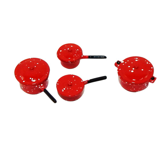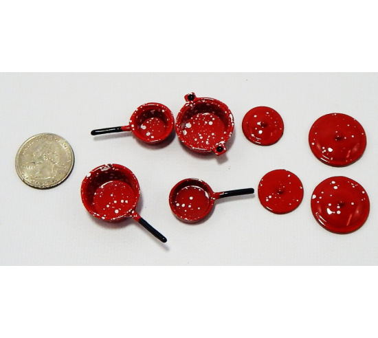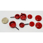 An eight piece metal set of mini pots and pans for sand tray therapy. Cute assortment of dishes will be used frequently along with the food items in your sand tray. Lids are removable and objects can be placed inside. Average size 1" each.