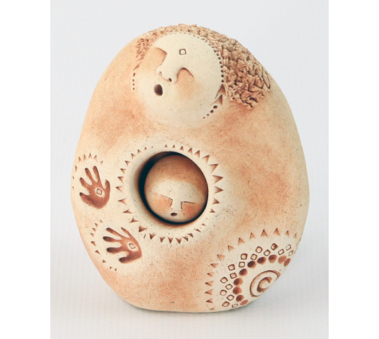 A sculpture of a mother with a removable baby which is included. Small sized figurine is 2 1/2" tall. Made in U.S.A.
