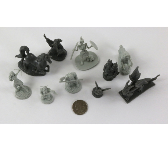 Set of ten mini figures is an inexpensive way to get started in sand try or expand your existing collection. Small plastic figures include a wizard, two headed creature, centaur, skeleton warrior, female elf warrior, dragon and more. Average size 2.25" tall.