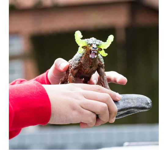 The Rock Beast races at lightning speed over the rugged terrain on its powerful hind hoofs and strikes fear into its enemies with razor-sharp claws. An armored neck protects against attacks and the four horns made of magical crystal turn enemies into rock. 5" long.