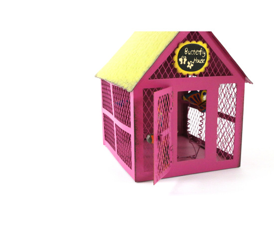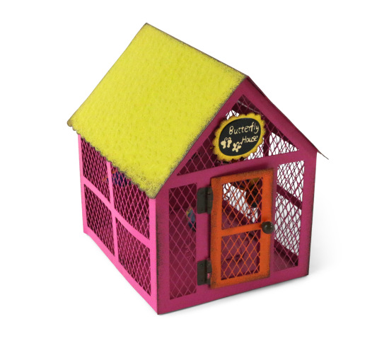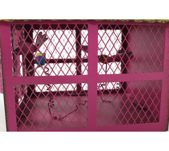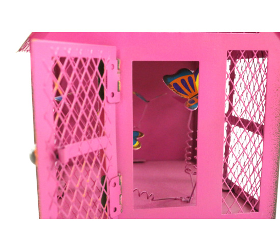 Images can't do this delightful piece justice. Once inside a butterfly habitat, one feels relaxed and connected with nature. This metal house even has attached butterflies that appear to be flying. Nice sized, measures 4.5" x 5" x 6".