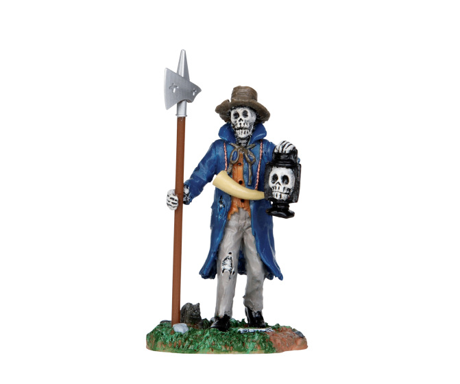 This night watchman figurine is a haunting figure. With a lantern and axe tow, the figure stands approximately 3 inches tall. Cast from resin with handpainted details.