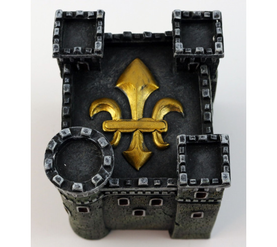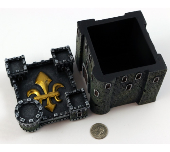 An ornate castle with removable roof will be used often with miniature knights and battle scenes. 4" x 3 1/2" x 4 3/4".