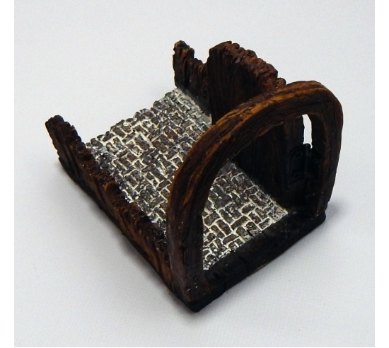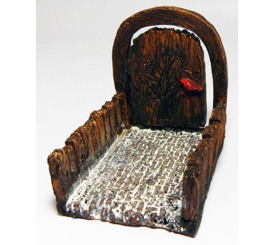 A resin door attached to a walkway. Door is hinged and opens with fine detailing. Measures 3 1/2" x 2 1/2" x 3"