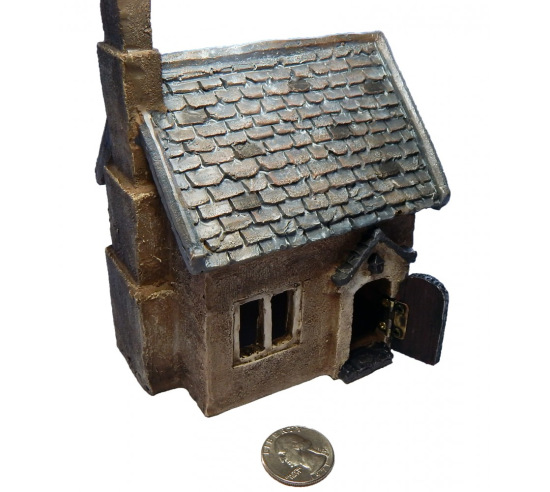 We had no idea it was possible to fall this much in love with a miniature but once you get your hands on this house, you'll feel the same. This perfectly sized resin house for sand tray therapy features a hinged door and details, details, details. Hollow interior for placing figures inside. Who knew a peasant's house could be so pleasant? House is 4" in width and 5 1/2" in height.