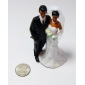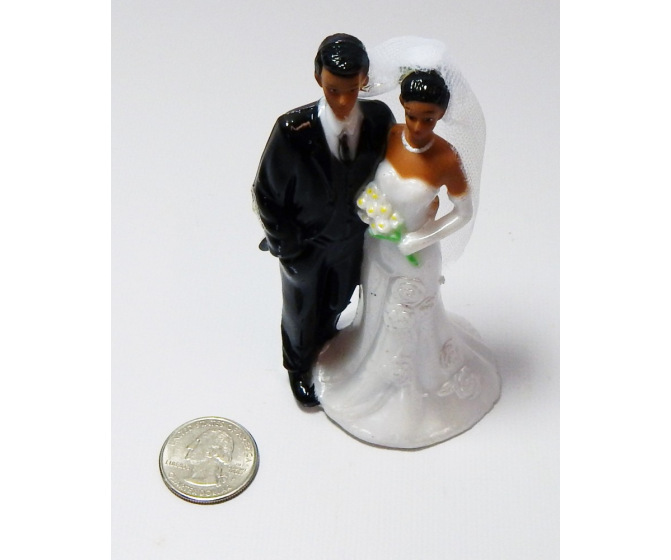 3" tall bride and groom are made of plastic and bride has a tulle veil. Nice quality for the price!