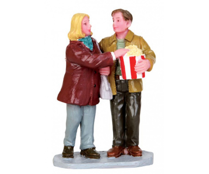 A young couple enjoying a bucket of popcorn for sand tray therapy. Made of resin, 2.56" tall.