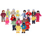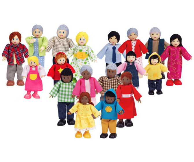 Buy all three of our six piece doll families and save! Set includes African American, Asian, and Caucasian doll families. Each family has six members including grandfather, grandmother, father, mother, son and daughter. Adults are 4 1/2" and children 3 1/2". Great set for dollhouse play or sand tray therapy. Dolls are made of wood, excellent quality with plastic hands.