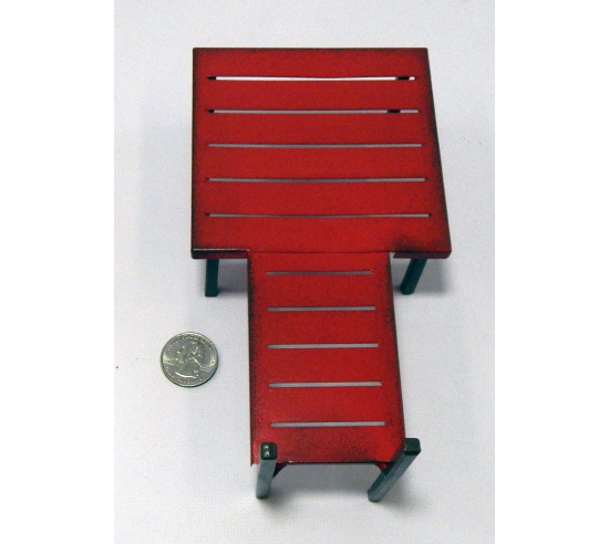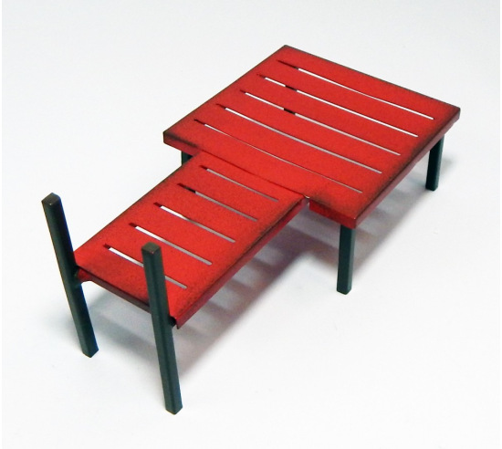 A red metal pier for sandplay. Measures 7" x 4" x 4".
