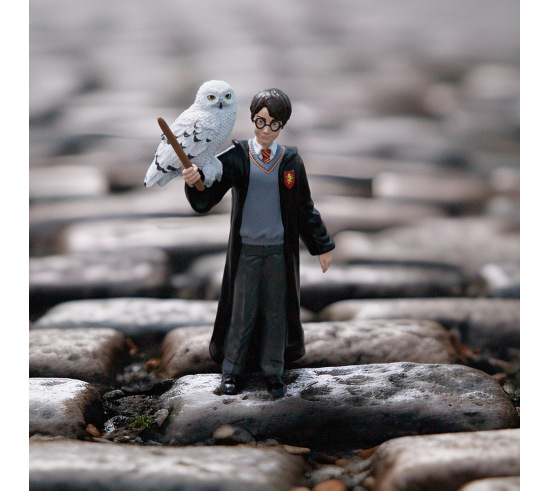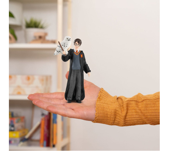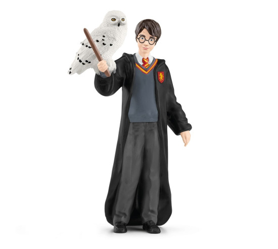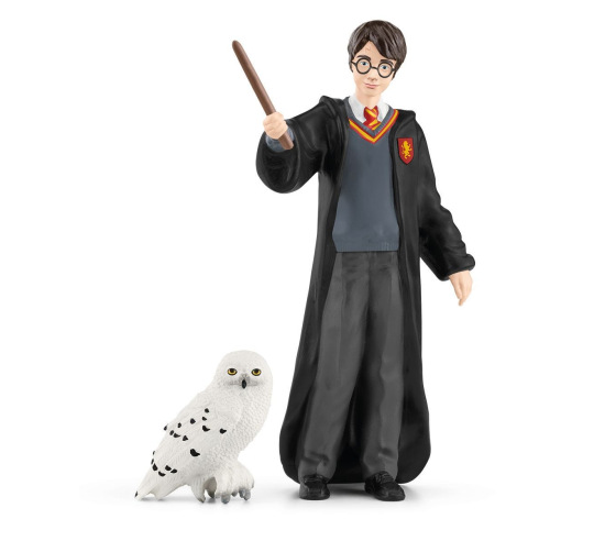The wizarding student Harry Potter, wearing his Gryffindor school uniform, with his wand and his iconic glasses, is accompanied by his eternally loyal pet snowy owl, Hedwig. Young wizards love the magical themes of the Harry Potter series. Stands 3.9" tall.