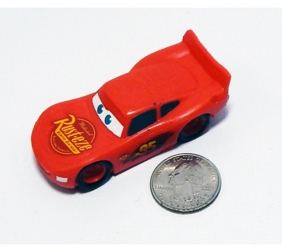 Lightning McQueen from Disney's® Cars. Measures 2 3/4" in length. Wheels are fixed.