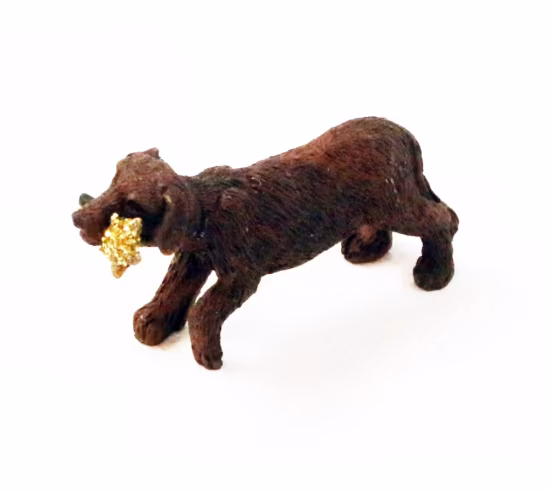 A miniature resin dog with a glittering magic wand in his mouth. Let the wishes begin. Tiny dog measures 1.5" long.