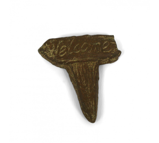 Create a lovely greeting in the sand with this weathered sign that states "Welcome". Resin, 2" tall.