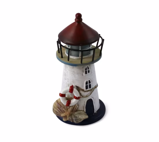 This symbolic piece is accented with an attached life preserver and seashells. Made of resin, 5.5" tall.