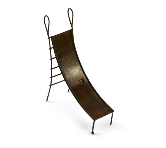 Miniature metal slide for sandplay. 4" tall.
