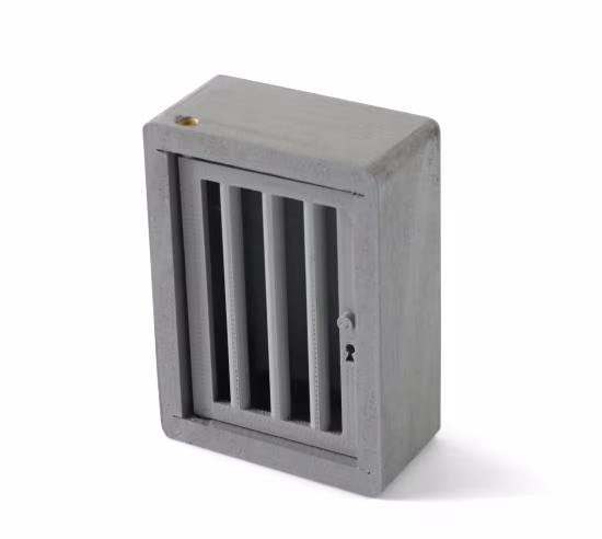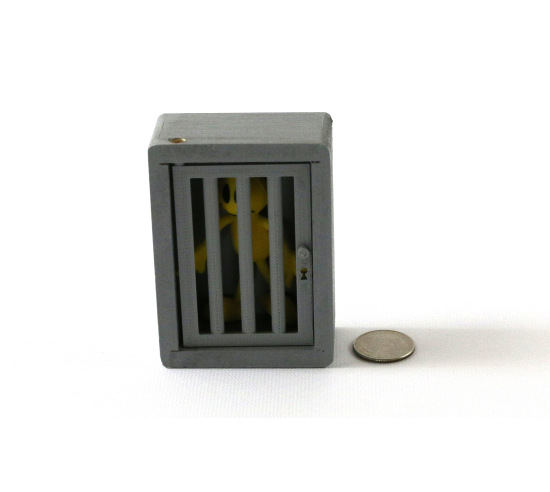 Don't have a big playroom or you're a traveling therapist? We get it. We've designed this smaller sized jail for a compact space. Same features as our Jail, only smaller. Wood and plastic, measures 2.75" x 1 3/8" x 3.75".