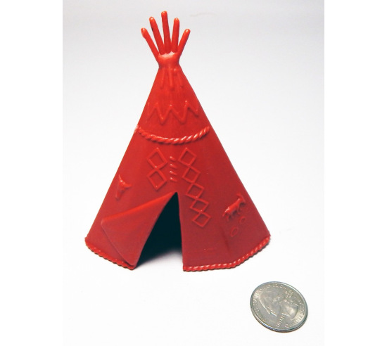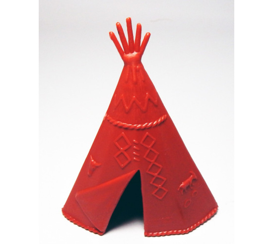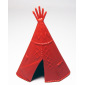 A red plastic teepee for sand tray therapy. Teepee is hollow inside. Measures 4 1/2" in height.
