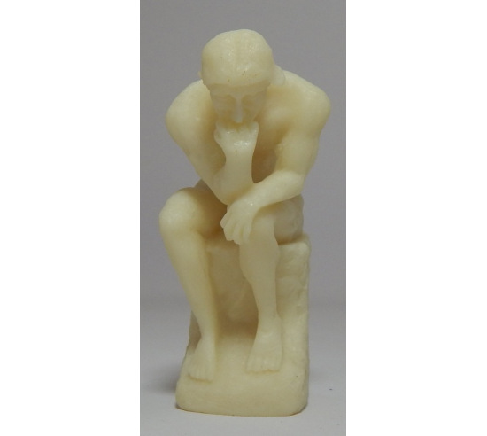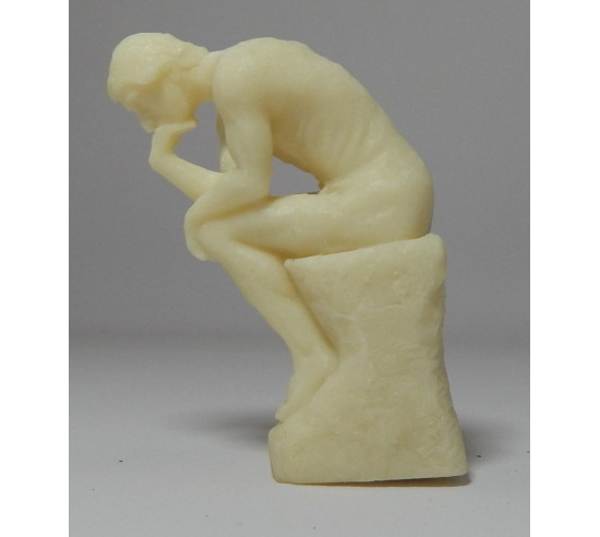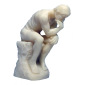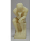A statue of a naked man in deep thought. Measures 3" in height.