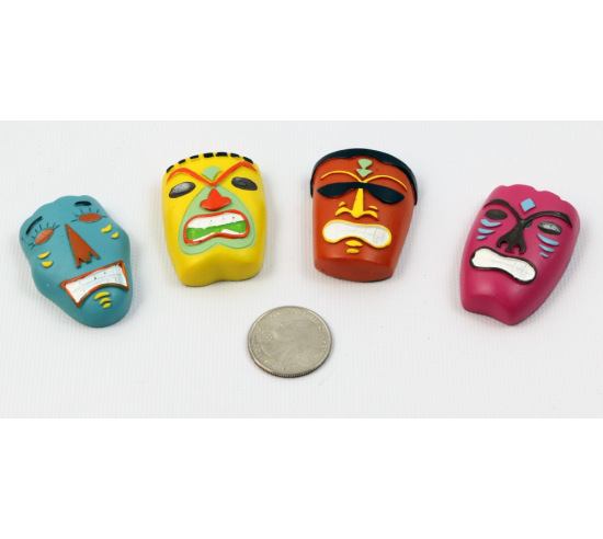 Tiki masks have been used in many cultures as a religious symbol or to protect the home. Assorted masks, includes one. Measures 1.75" in length.