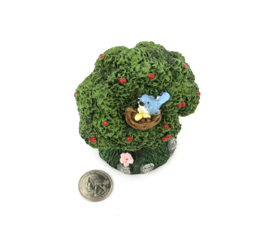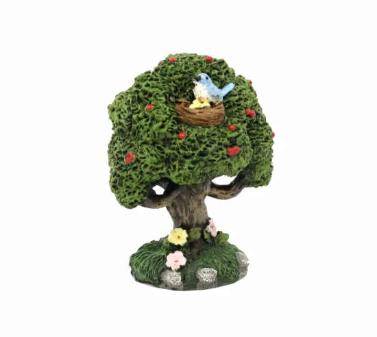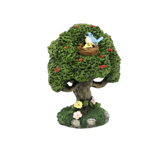 Lovely tree full of life, with a bird nest in the canopy, flowers / fruit on the branches, and flowers around the base. Excellent for sandtray!