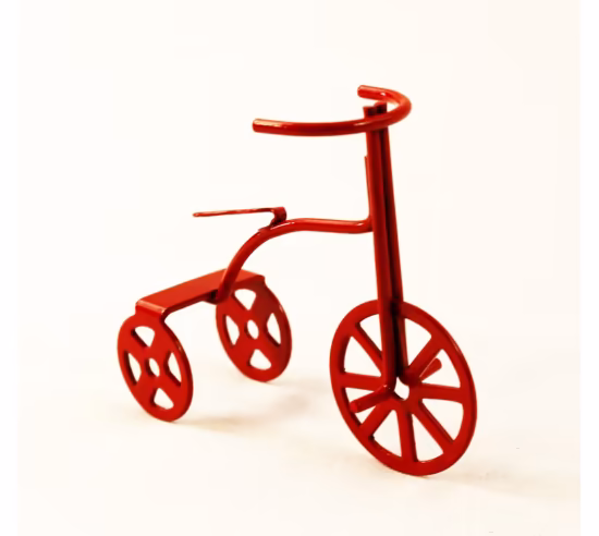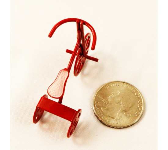 A miniature red tricycle for sand tray therapy. 1.5" tall.