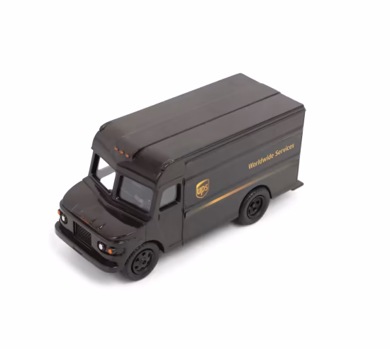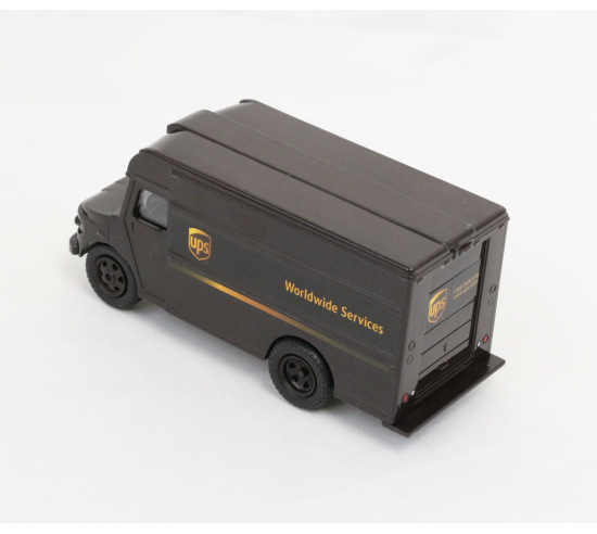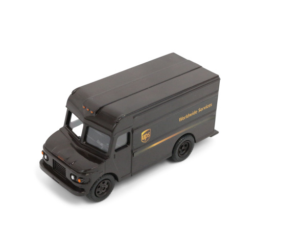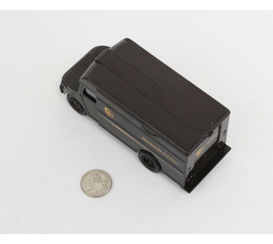 This UPS Truck is a familiar sight around town. Known for speed, delivering packages and being in a rush. Plastic, pull back. Doors do not open. 5.25" long