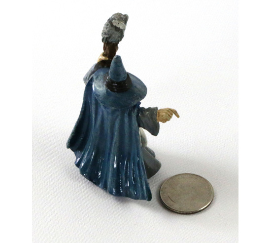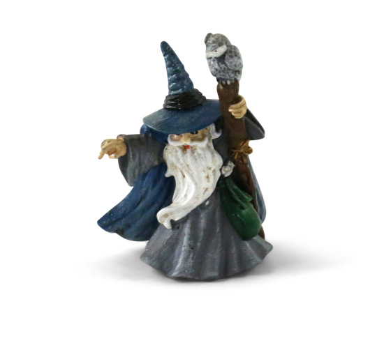 This is one of our smallest wizards, making it essential for a portable sand tray. What it lacks in stature, it makes up for in grandeur. Staff with owl, wizard hat and cape. 2.75" tall.