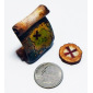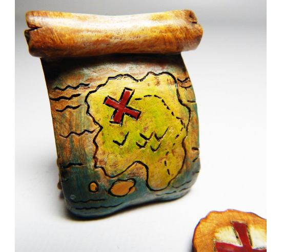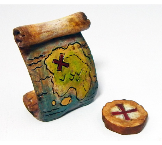 A miniature resin treasure map with matching "X" will be a superb addition to your sand tray. Two piece set will enable clients to picture where their treasure lies and how close they are to it. Map, measuring 1 3/4" long, even able to stand in the sand. "X" is 3/4" in diameter.