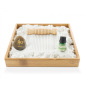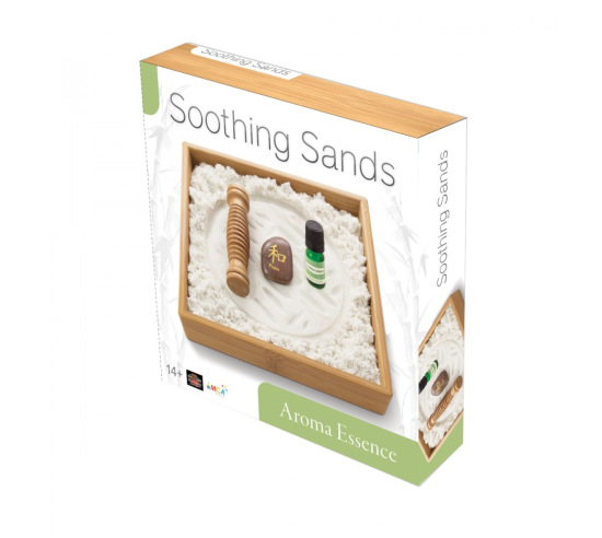 Zen sand trays have been in use for centuries for their ability to relieve stress. Small desktop sized bamboo tray is 10"x10" and includes 1 lb of moldable sand, peace stone, massage roller, and lemon grass essential oil. Also useful to introduce teen and adult clients to the relaxing properties of sand. Recommended age 14+