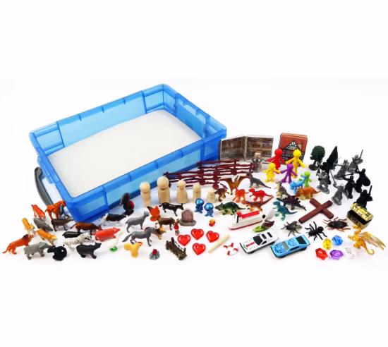 Our basic portable sand tray starter kit just got better! If you're a home-based therapist, this is the perfect set to get started. Combined, this set weighs less than 9 lbs, making it easily mobile while the sand still fills the tray. Miniatures are selected to maximize space and coordinate with the compact tray.