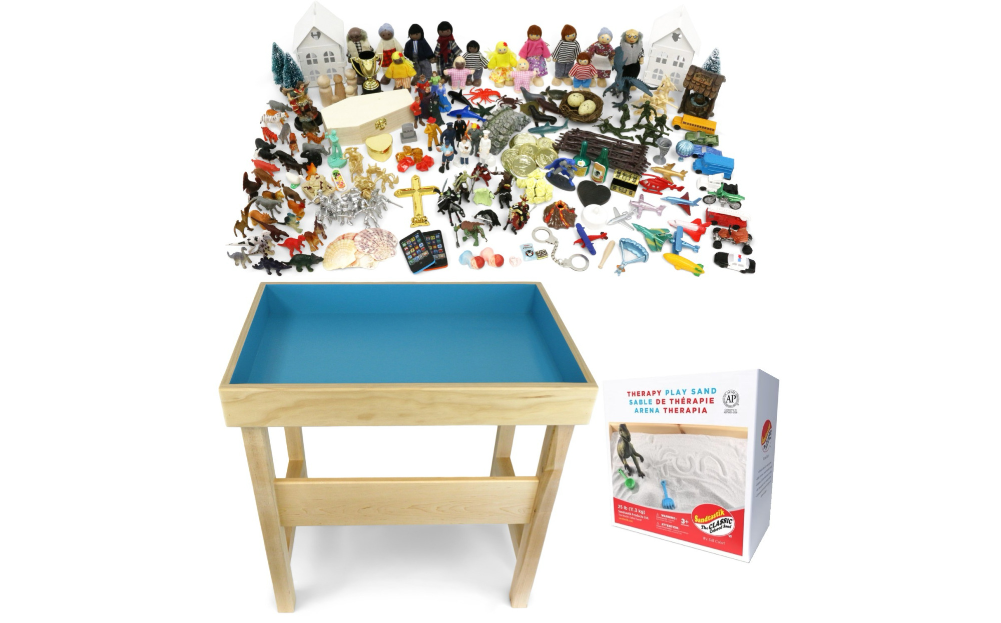 25 lbs of white Sandtastik® Therapy Sand is also included. Sandtastik® sand is safe and contains no quartz, no asbestos, no free silica, no wheat and no nuts.