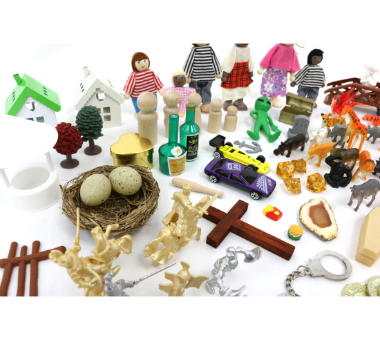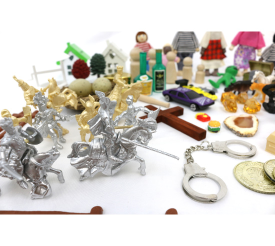 Our Basic Starter Kit features all the qualities that make Play Therapy Supply sand tray sets a must have for your office or playroom. This set includes natural objects, religious, containers, and symbolic objects as well. Items in our latest version include high quality knights and horses from Papo®, two houses with opening roofs, and a wishing well. We've ensured your kit is made from a variety of materials for sensory integration.