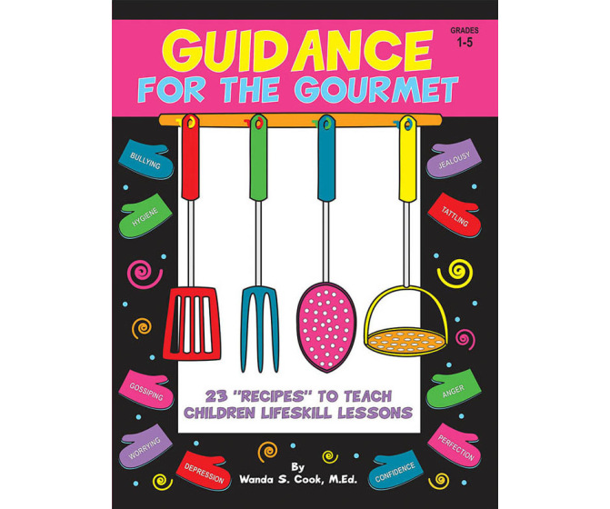 Become a “top chef” counselor by presenting these outstanding, upbeat, fun-to-do, lessons. Each life-skill lesson includes three distinct “courses.” Beginning with an appetizer, each introductory activity captures the students’ interest in the topic. Then the main course, which teaches the students about the topic through an attention-holding story. Lastly is the dessert, a fun-filled activity that culminates the lesson’s message. For example, the topics in the lesson Shondra, Class Bully include: Appetizer: Bowling for Bullies Roll-ups (Bottles with students’ names are set up and a tennis ball is rolled. When a bottle is toppled, the person whose name is on that bottle must tell about a time when he or she was bullied or saw someone else being bullied.) Main Course: Menacing Miniature Meatloaf (Read the story Shondra, Class Bully and ask the involvement questions found throughout the text.) Dessert: Mean-to-mellow Thank-you Tortes (Conclude the lesson by having the students make a Thank You Note for someone who has helped them to do the right thing.) In addition to bullying, there are lessons that address the topics of: gossip, jealousy, behavior, accepting blame, worrying, anger, perfection, tattling, grief, confidence, hygiene, and more.