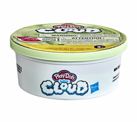 Scented Play-Doh Super Cloud compound feels like holding a soft, ooey gooey cloud in your hands! The irresistibly fun watermelon scent and delightfully bright green color is sure to make eyes, hands, and noses happy. This tactile toy for kids 3 years and up comes in a 4-ounce resealable can to squeeze, sniff, and squish as much as they wish.