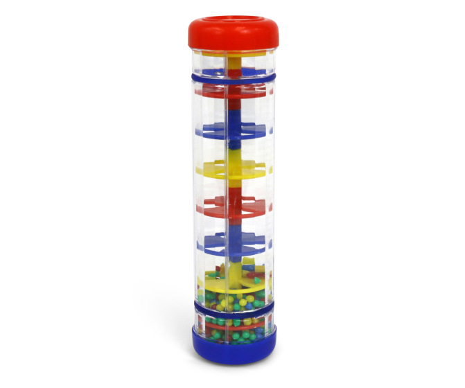 The rain stick makes a calming "rain" noise as tiny plastic beads slowly fall through the internal baffles. Flip it back over it start it again, or shake it like a musical instrument. 8" in length.