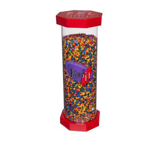 The Find It® KIDS version contains primary-colored pellets with 40+ hidden items. The end caps are a cheerful bright red. This version is perfect for the classroom, in the car, and easily transportable; no batteries or clean up required. The hidden objects are KID friendly and include each letter of the alphabet, a car, balloon, star, baseball, and the elusive hidden penny. The hidden objects are itemized on the top cap with a check off pad included with the game. All Find It® games are assembled in the USA.