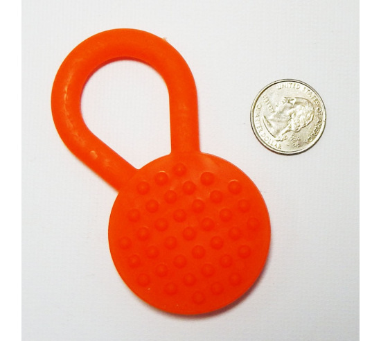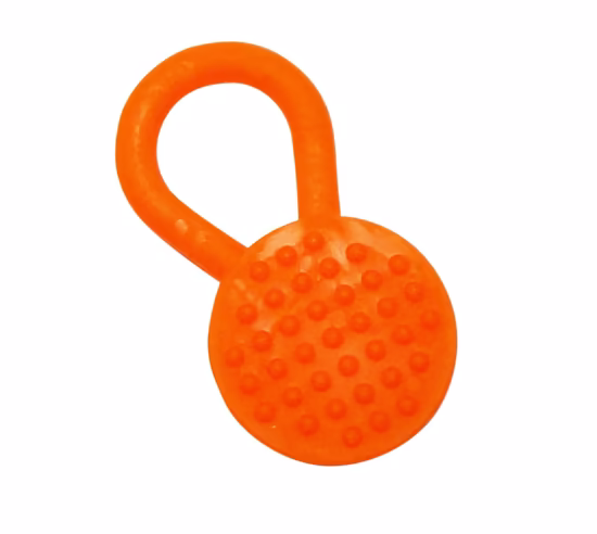 An orange flavored lolli knobby for children who crave oral input. PVC, Phthalate, and latex free material. FDA approved material.