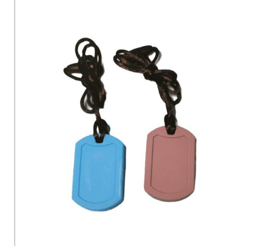 Sensory dog tag pendants are designed for the extreme and aggressive chewers in mind. These are one of our thickest, dense durable sensory tools. Dog tag pendants come with a breakaway clasp for an added piece of mind, but serve a functional purpose as they can be attached to the child to wear like a pendant/necklace or can be attached to a backpack.
