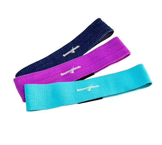 Includes three bands of different tension strengths: teal (lightest), purple (medium), and blue (heaviest). The therapeutic relief when stretching the band is beneficial for all children who need to decompress and relax including those with ADHD, autism, and sensory needs