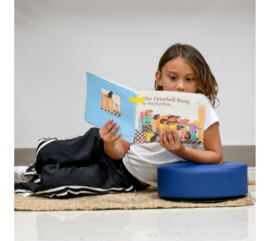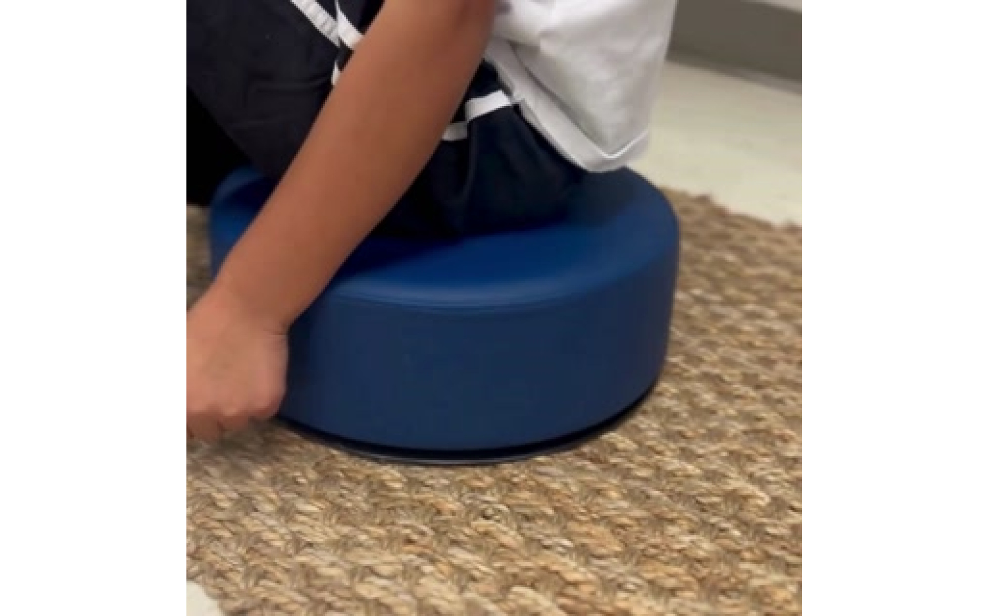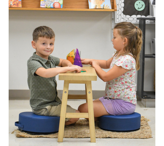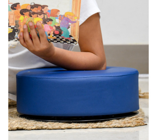 Active Floor Seating: A thick 4" cushion pairs with a unique 120-degree rotating pivot disc that allows kids to quietly twist and turn. This controlled movement supports attention and focus during circle time, reading, or homework.