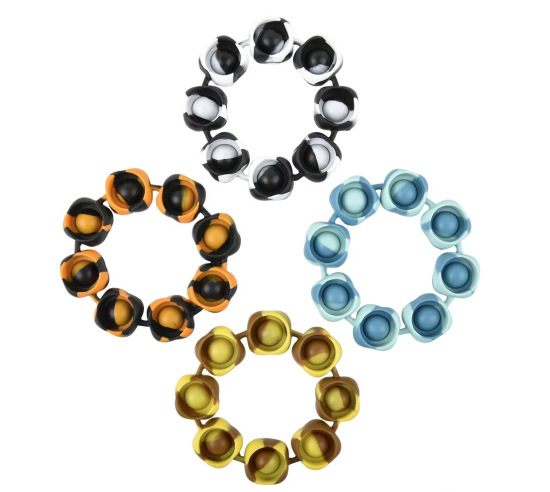 Take the popping action with you wherever you go with the Bubble Popper Bracelet! Each bracelet features eight poppers. One size fits all.