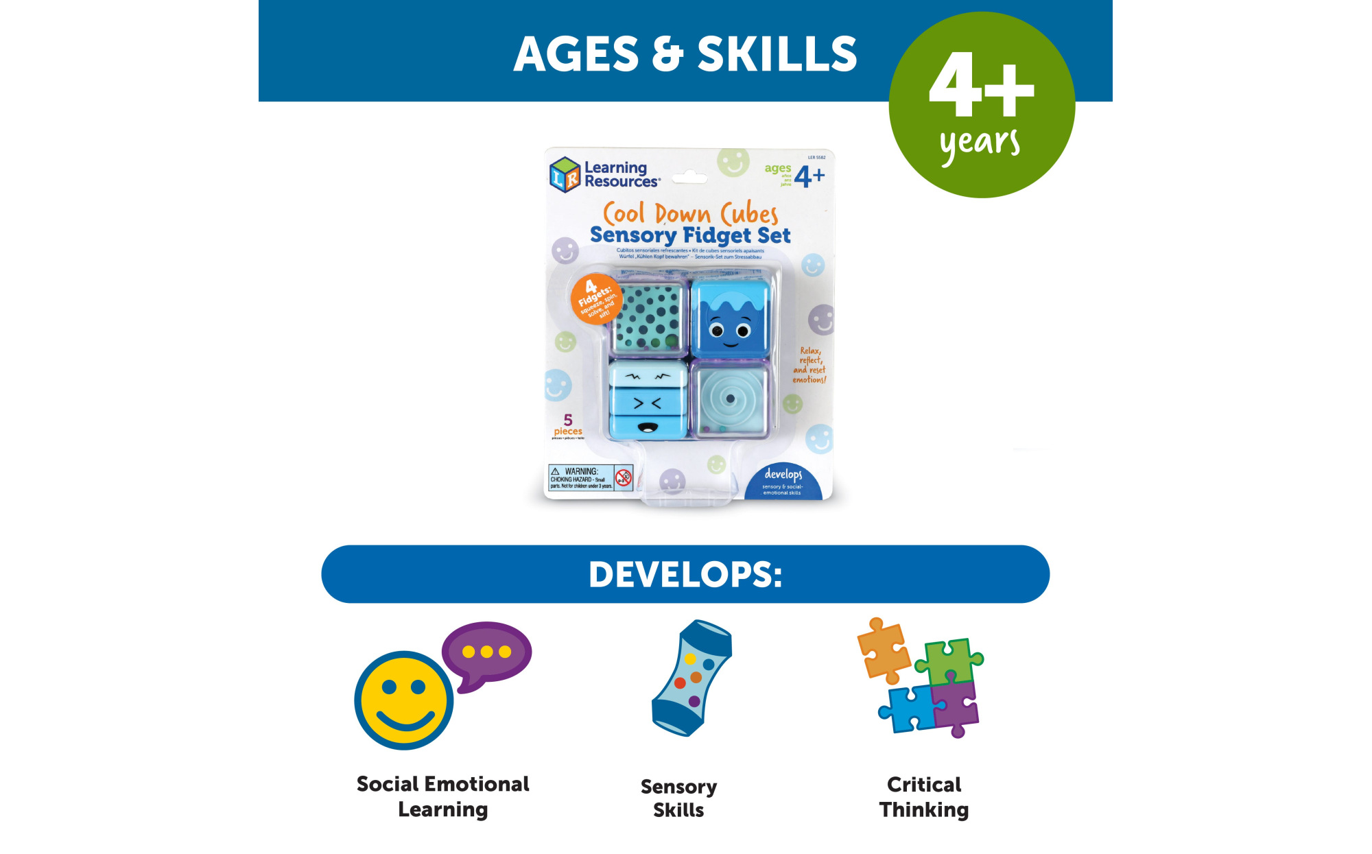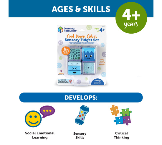 Help young children find calm and focus with the Cool Down Cubes Sensory Fidget Set. This set includes four unique sensory cubes, each featuring a different calming activity designed to engage little hands and minds: