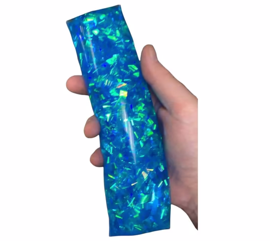 Slippy sensory jumbo water snake is extra big, for more slippy sensory fun! Features reflective foil pieces inside. 8" long.