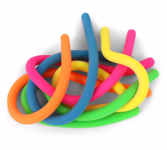 Noodlies are the fun super stretchy fidget! Flip them, pull them, bend them, stretch them, Noodlies stretch super far and return to their original shape every time. Includes a bucket of five fun colored fluorescent Noodlies.